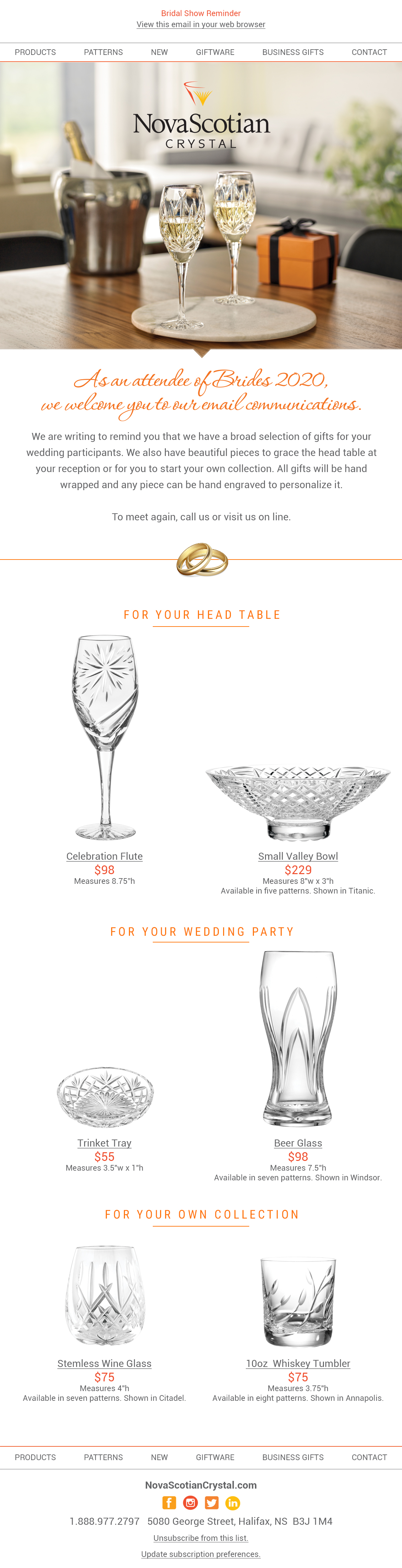 Docaitta Design was the sole design company for the Brand, working with the marketing team within NovaScotian Crystal on practically a daily basis. Our relationship with them began in 2014 and lasted until they unfortunately closed because they could not make product due to Covid-19. The craftsmen worked in too close quarters.
