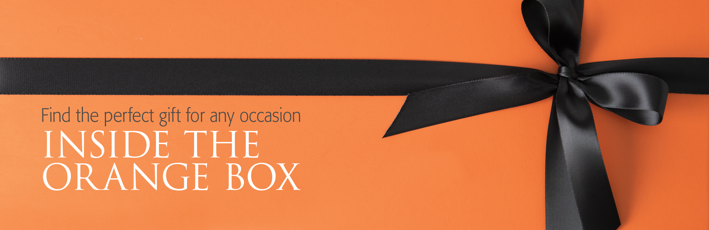 A web banner featuring their iconic orange box. When someone received a box that colour, they knew they were receiving something very special. They were the only mouth-blown and hand cut crystal maker not only in Canada, but also in North America.