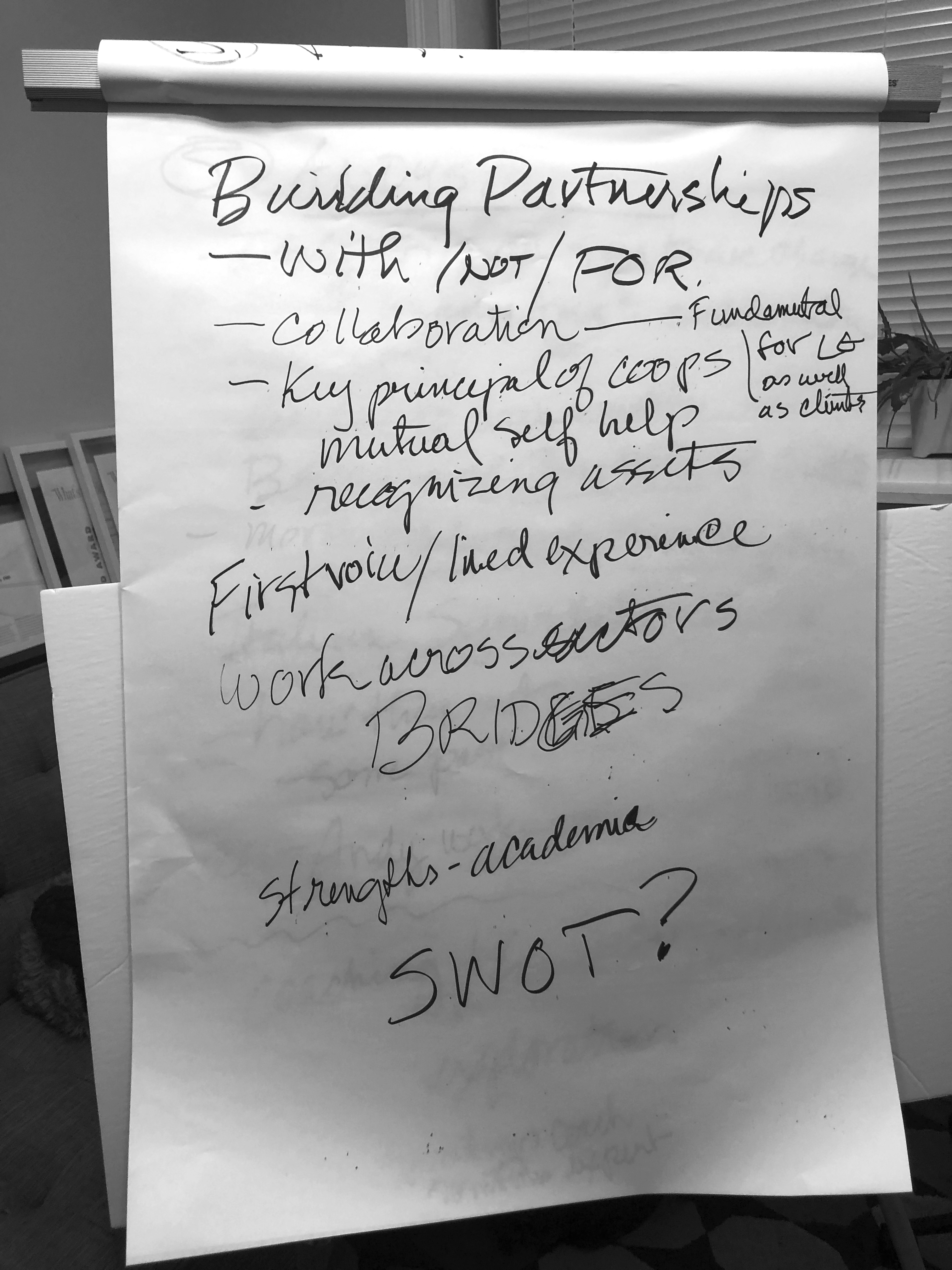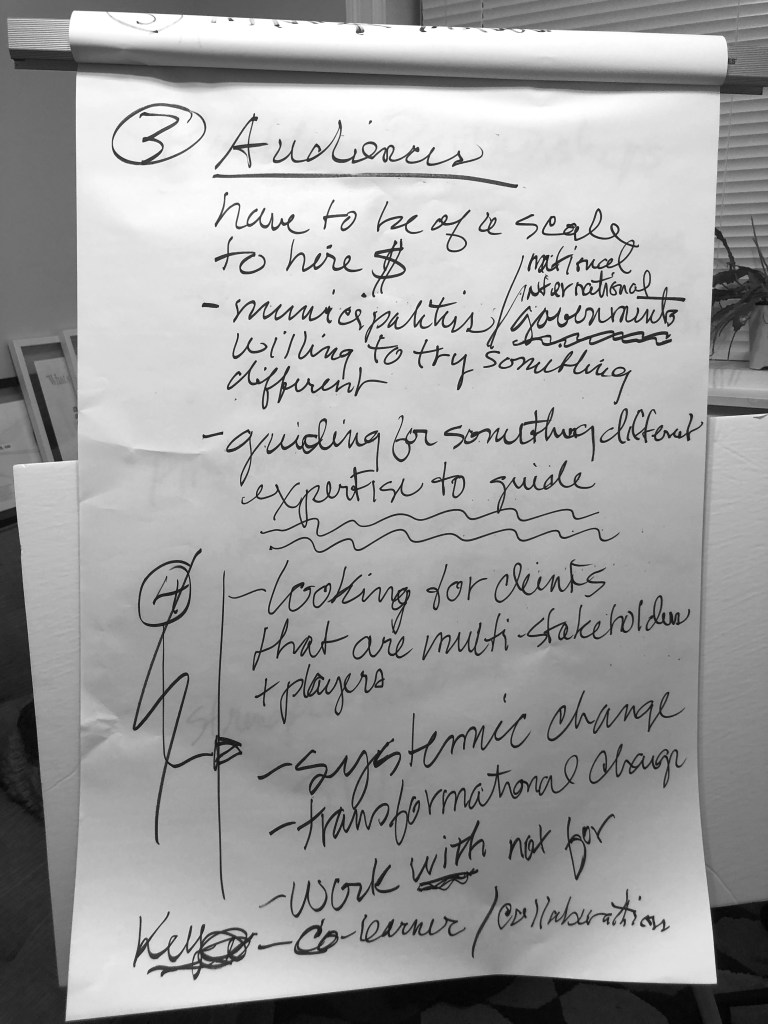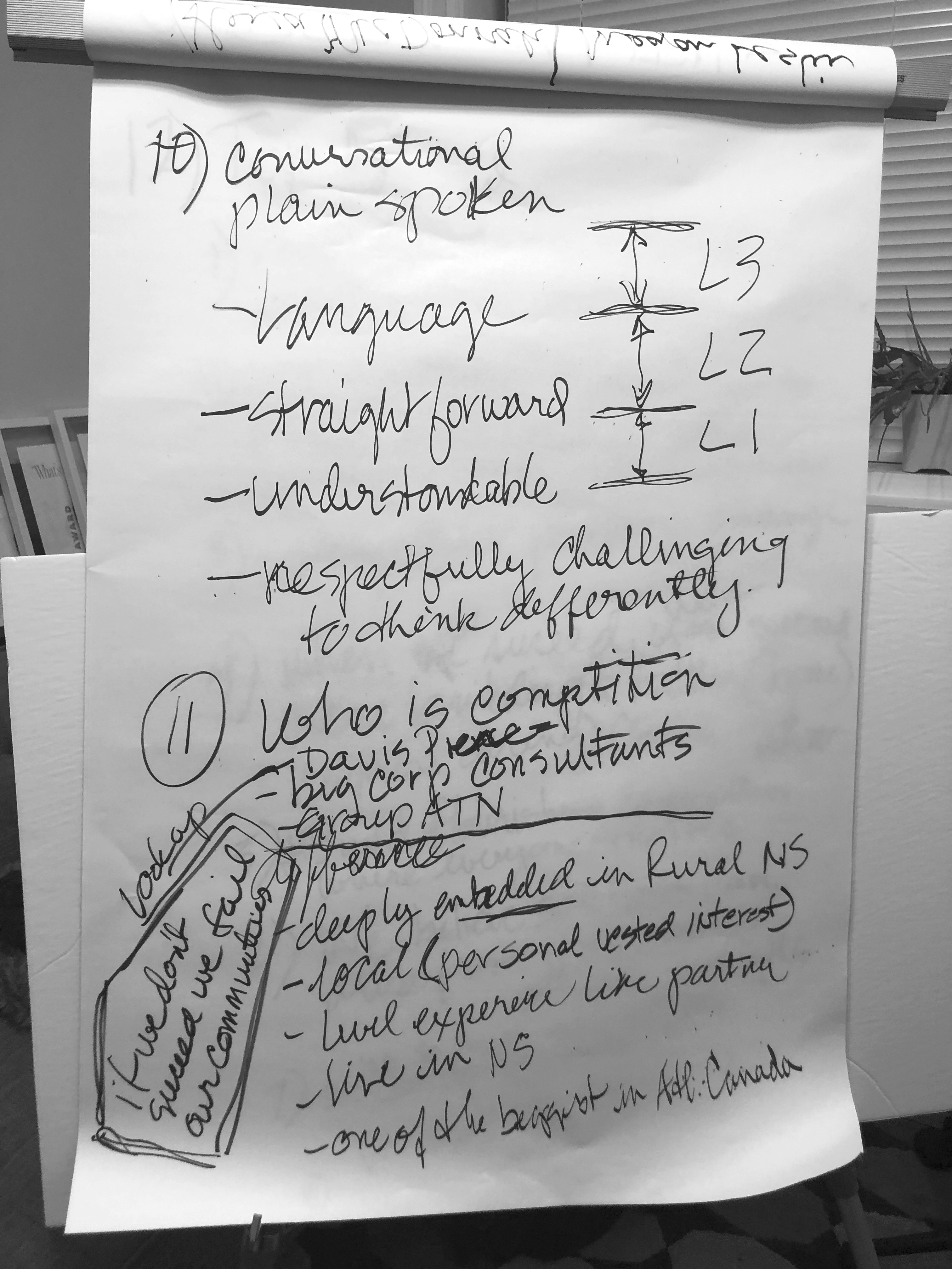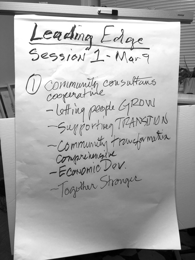 The following are images of this process taken with Flourish (formerly Leading Edge Community Development) to determine who they were as an organization and also to find a new, more meaningful name for their organization.